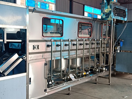 该生产线是专供3-5加仑大桶装饮用水生产之用,型号有100型、150型、200型、300型、450型、600型、900型、1200型。该系列桶装生产线由洗瓶、灌装、封口三部分组成。